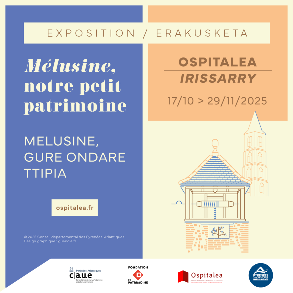 Le Département des Pyrénées-Atlantiques présente à l’automne 2025 au Centre Départemental d’Éducation au Patrimoine Ospitalea à Irissarry une exposition consacrée au petit patrimoine rural : moulins, lavoirs, chapelles, fours à chaux, kiosques, fontaines, maisons de maître ou encore stèles discoïdales…